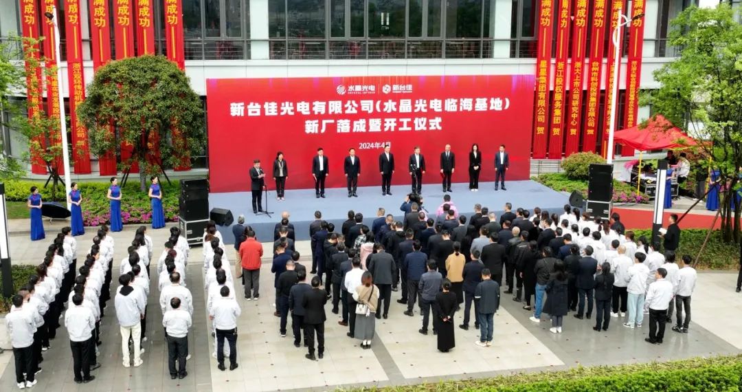 2024年4月8日,四月的臨海,春意盎然,萬物復蘇。今日新臺佳,門庭若市,蓬蓽生輝。新臺佳光電有限公司(水晶光電臨海基地)新廠落成暨開工儀式在新廠舉行。臨海市委書記吳華丁,市委常委、副市長宋江涌,市政府副市長嚴齊軍,市政協副主席郭燕飛,市級有關部門主要負責人,浙江臨海經濟開發區、大田街道主要負責人、分管負責人、村級干部以及合作伙伴、公司集團各級高層領導、新臺佳員工共200多人出席此次儀式活動。