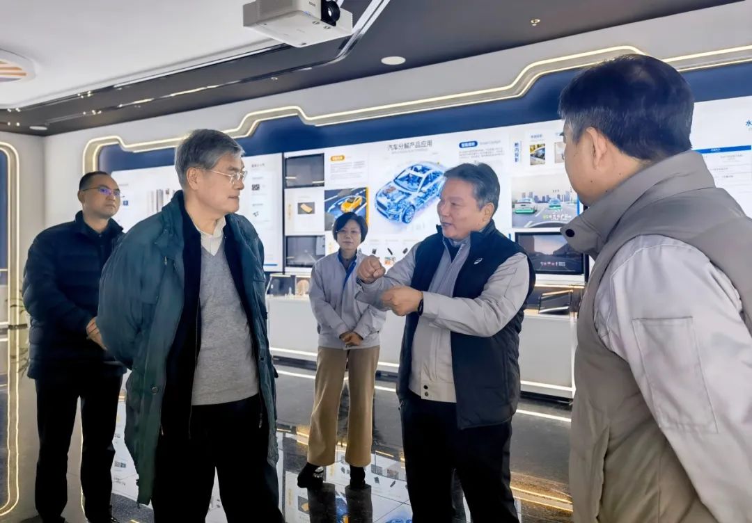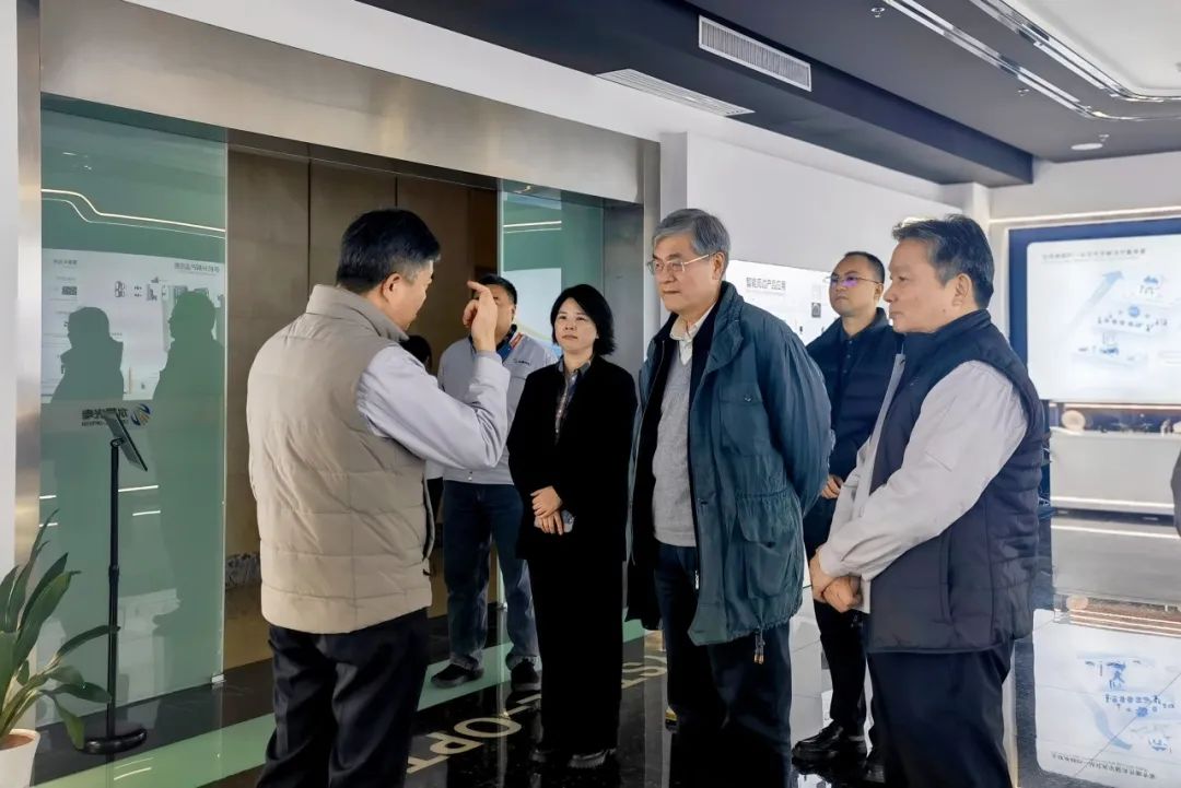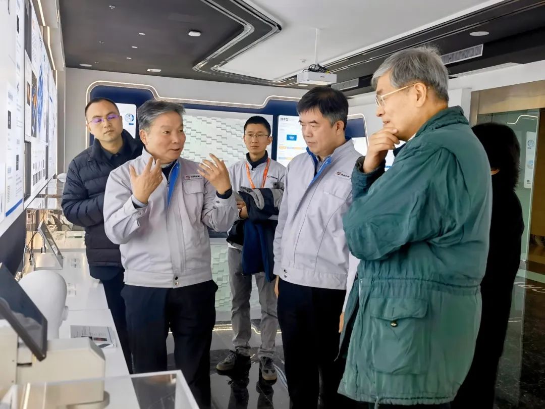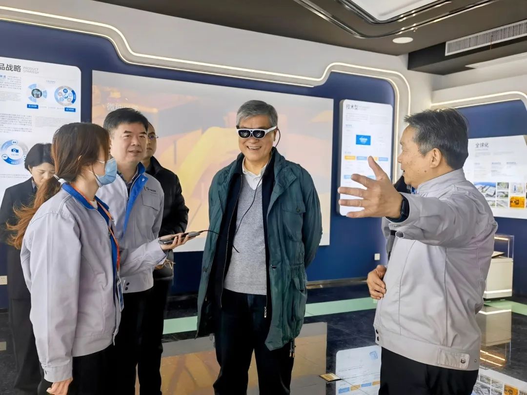 在戰略展廳,董事兼總經理王震宇詳細地為潘云鶴院士一行介紹了水晶光電從創立之初至今的發展歷程,特別是在消費電子領域的深耕細作、車載光電技術的突破性進展,以及積極擁抱AR/VR時代的光學戰略布局。潘院士對每一環節的講解都表現出濃厚興趣,不時點頭贊許,并與公司高管就技術前沿、市場趨勢等話題展開了深入而富有前瞻性的交流。潘院士還特別關注了公司的技術研發體系,對水晶光電在光學領域持續創新、不斷突破所取得的成果給予了高度評價。