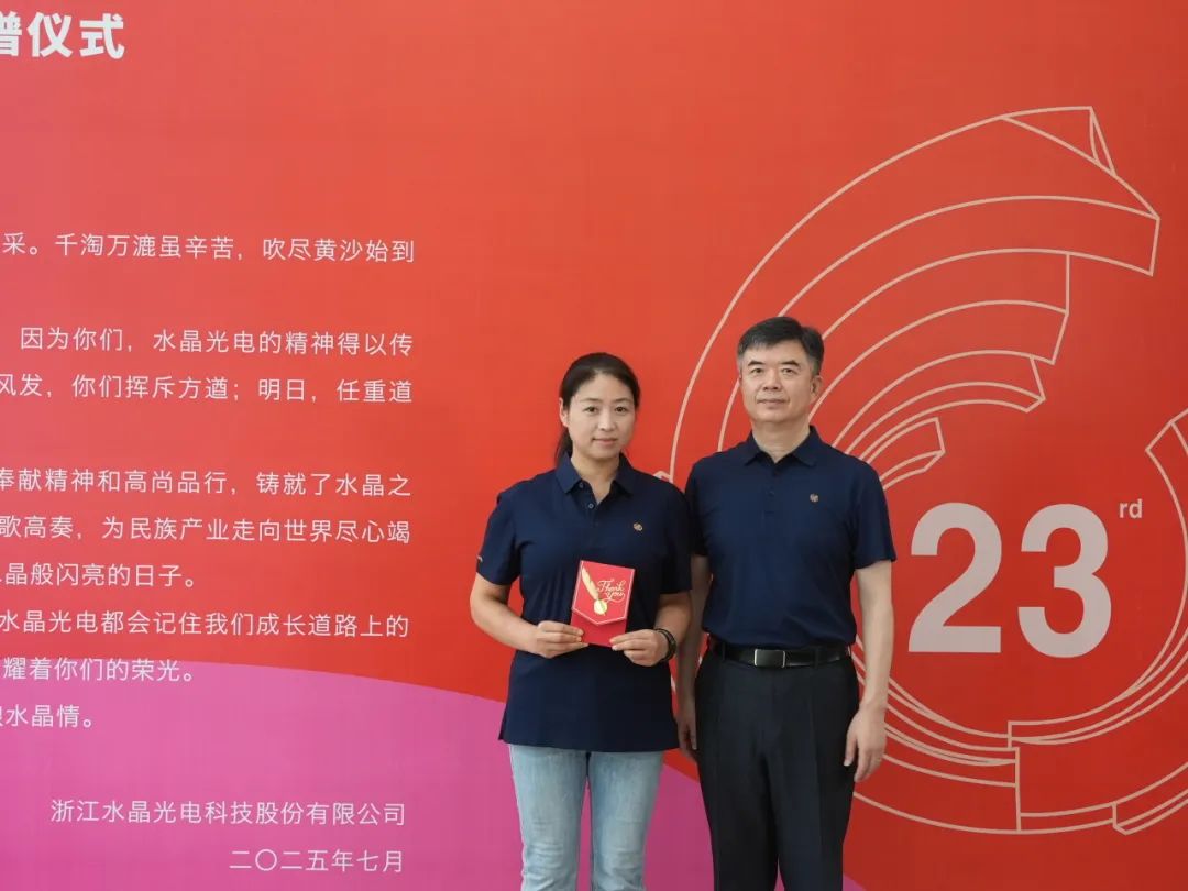 時光荏苒,歲月鎏金。又是一年盛夏,7月22日我們迎來了一個莊重且溫暖的特別時刻——水晶光電成立二十三周年忠誠員工入譜儀式。