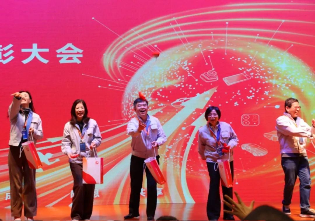 1月16日,水晶光電2024年度表彰大會在臺州基地盛大召開。 公司領導班子、優秀員工、優秀團隊以及各部門員工代表齊聚一堂,共同見證這一榮譽時刻。本次表彰旨在為公司24年經營目標達成和戰略落地做出突出貢獻的優秀員工與團隊表彰,傳遞榜樣力量,激發工作活力。