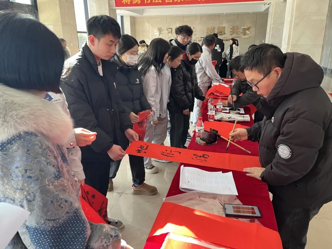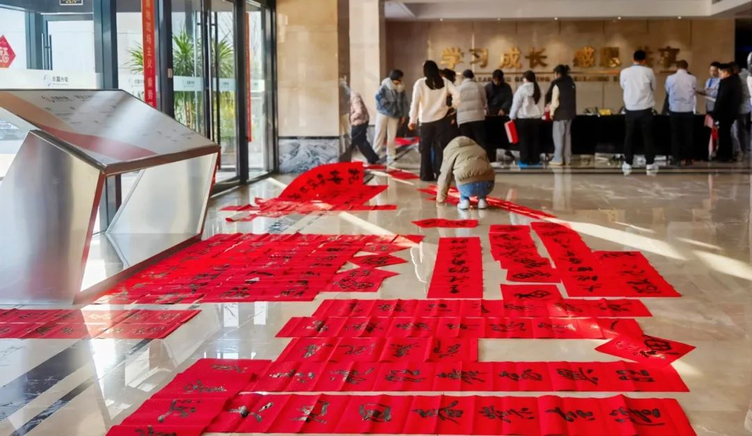 活動現(xiàn)場,書法家們筆走龍蛇,為廣大員工書寫寓意深遠的蛇年賀歲春聯(lián)與新春福字,并與書法愛好人士進行心得交流?,F(xiàn)場氣氛熱烈,員工們紛紛駐足圍觀,注視著書法家們在翰墨芬芳之中揮毫潑墨。一幅幅寓意吉祥,飽含深情的春聯(lián)和福字躍然紙上,這些春聯(lián)和福字不僅寄托了對新春的祝福,也表達了對未來的美好祝愿,每一個字都蘊含著深厚的文化底蘊和美好的寓意。